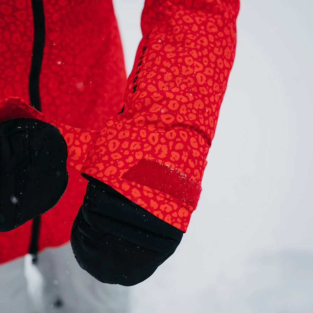 - mittels Reißverschluss abtrennbarer, elastischer Hüftschneefang mit Jacke-zu-Hose-Verbindungssystem und Druckknopfverschluss