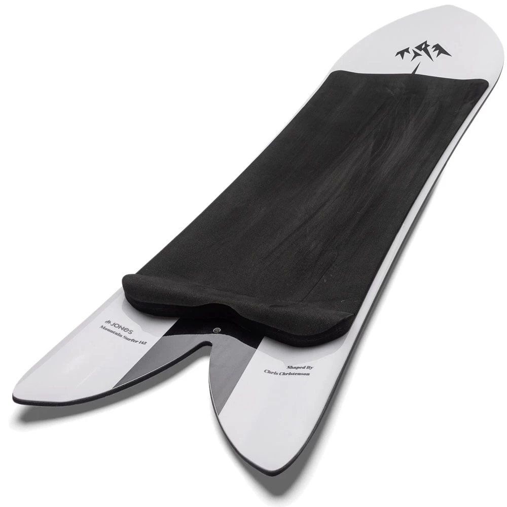 Der Mountain Surfer von Jones ist sprichwörtlich ein Surfboard für den Schnee. Auch der Shape des No-Boards stammt aus der Feder von Surfboard-Shaper Chris Chistenson. Das Besondere am Jones Mountain Surfer ist die solide Konstruktion aus Pappelholzkern, biaxialen Fiberglas, gesinterter Base und ABS Sidewalls. Und natürlich muss das dreidimensionale Boardprofil erwähnt werden. Dank der 3D-Kontur lässt sich das Mountain Surfer Snowboard sehr gut steuern und hält die Spur.