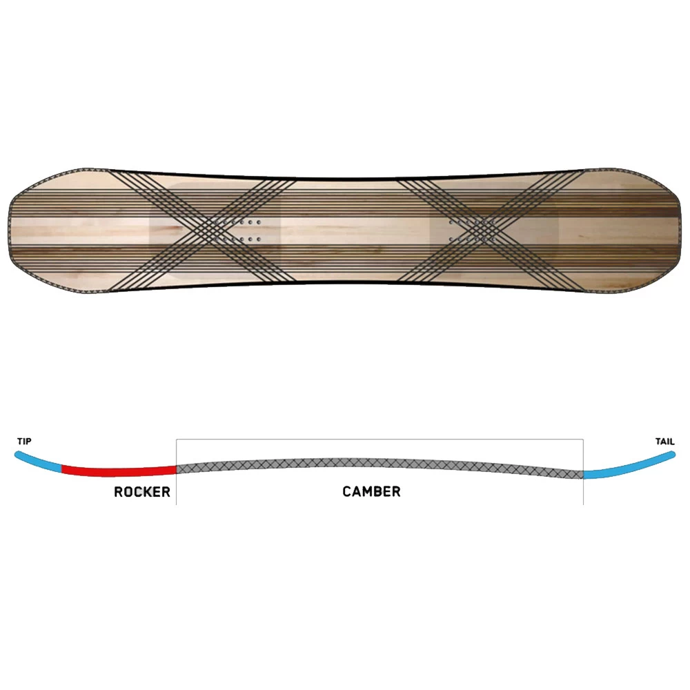 - Camber: Hybrid Camber – Vorspannung bis in den Bindungsbereich, Rocker Nose