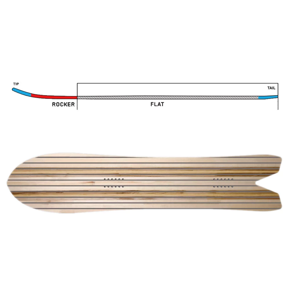 - Camber: Flat Rocker – flache Boardmitte und Rocker Tips