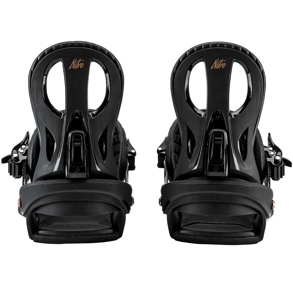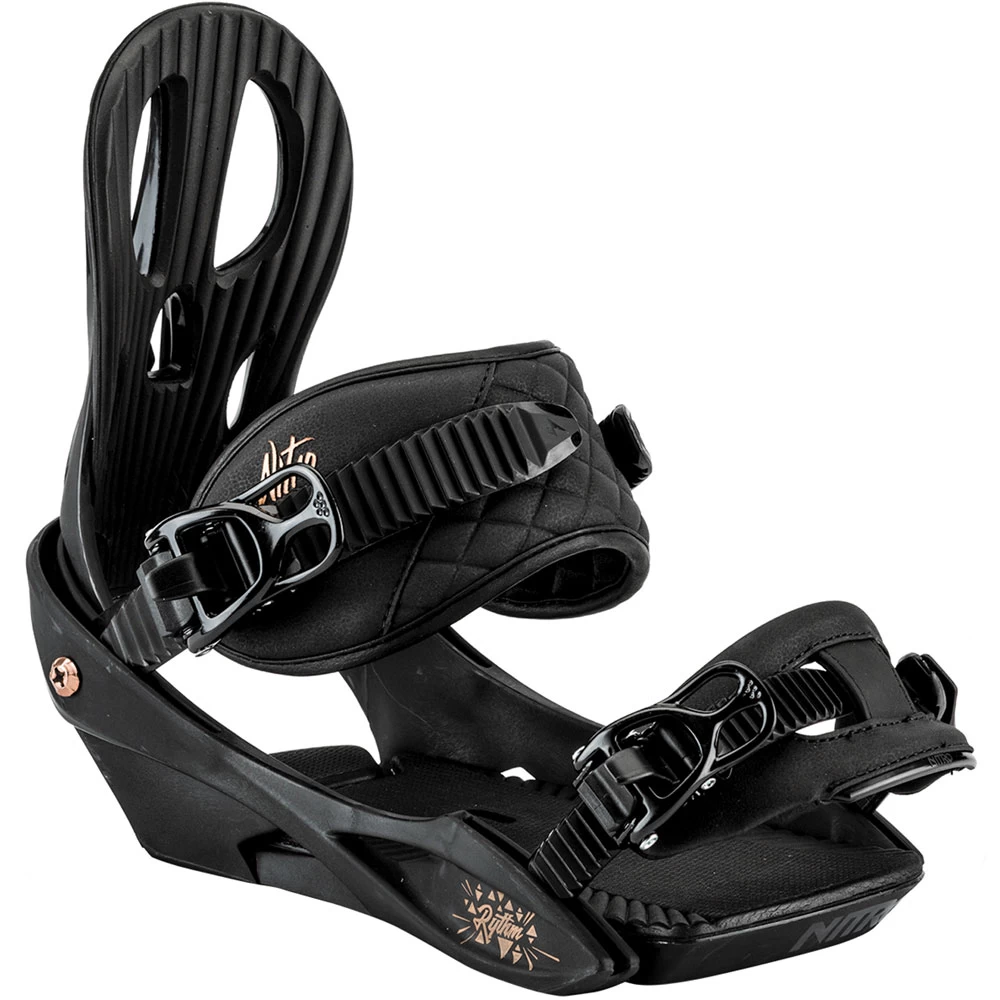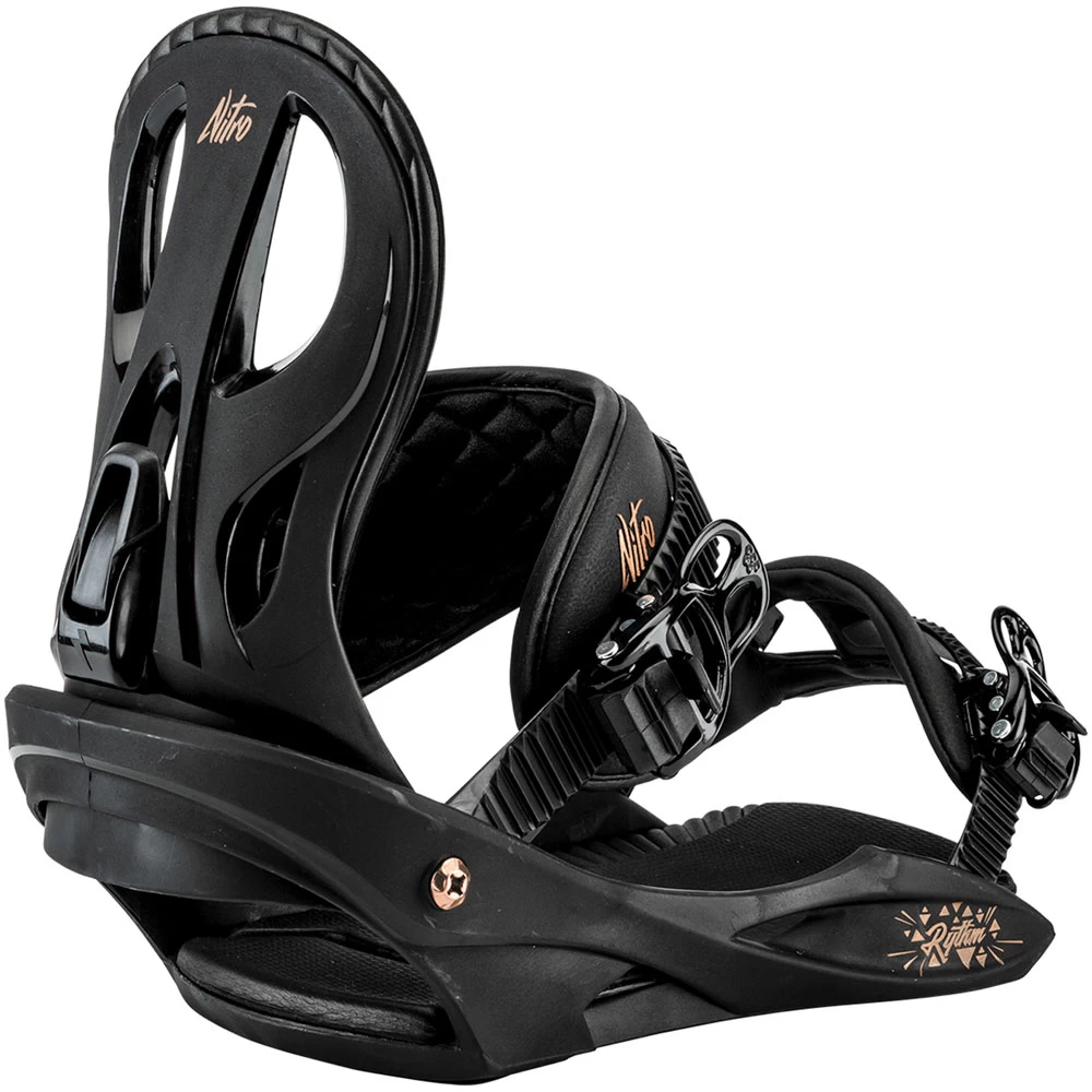 Weibliche Rider die eine Snowboardbindung im mittleren Flexbereich für alle Bedingungen suchen, sei die Rythm von Nitro ans Herz gelegt.