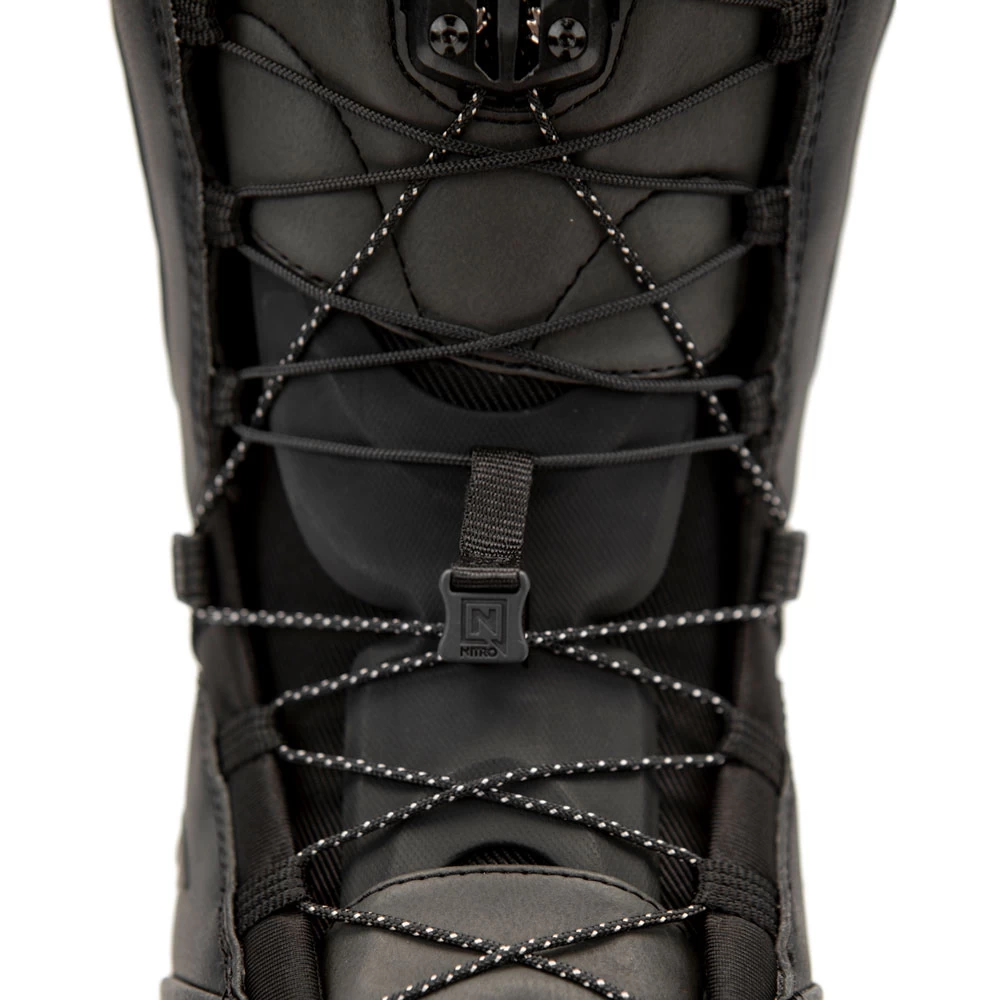 Seine Kraft schöpft der Select TLS aus seiner Armored Shell und Spine, der Power Zunge und dem zusätzlichen Powerstrap. Der thermoformbare Cloud 9 Innenschuh wird durch die externe ILS Liner Schnürung optimal in die Ferse gezogen, sodass diese fest im Boot sitzt und nicht herumrutschen kann. Mit der unkompliziert zu bedienenden TLS Schnellschnürung fixierst du die Nitro Boots passgenau auf zwei separate Zonen. Für eine bequeme Passform und komfortablen Sitz besitzt der Select TLS ein Ortholite Fußbett mit EVA Zwischensohle. Auch die Vibram Außensohle mit Airpad in der Ferse sorgt für zusätzliche Vibrationsdämpfung und sicheren Grip im Schnee. Die Vibram-Sohle ist ebenfalls sehr robust und langlebig, sodass du mit den Boots eine ganze Weile Spaß haben kannst. Das Einsatzgebiet des Select TLS liegt definitiv im Freeride und Carving Bereich.