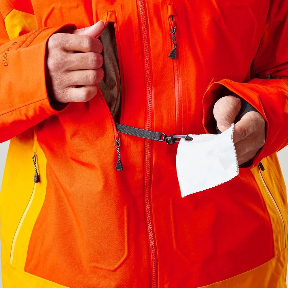 - 2 Brusttaschen mit Reißverschluss, rechts inklusive herausnehmbarem Brillenputztuch