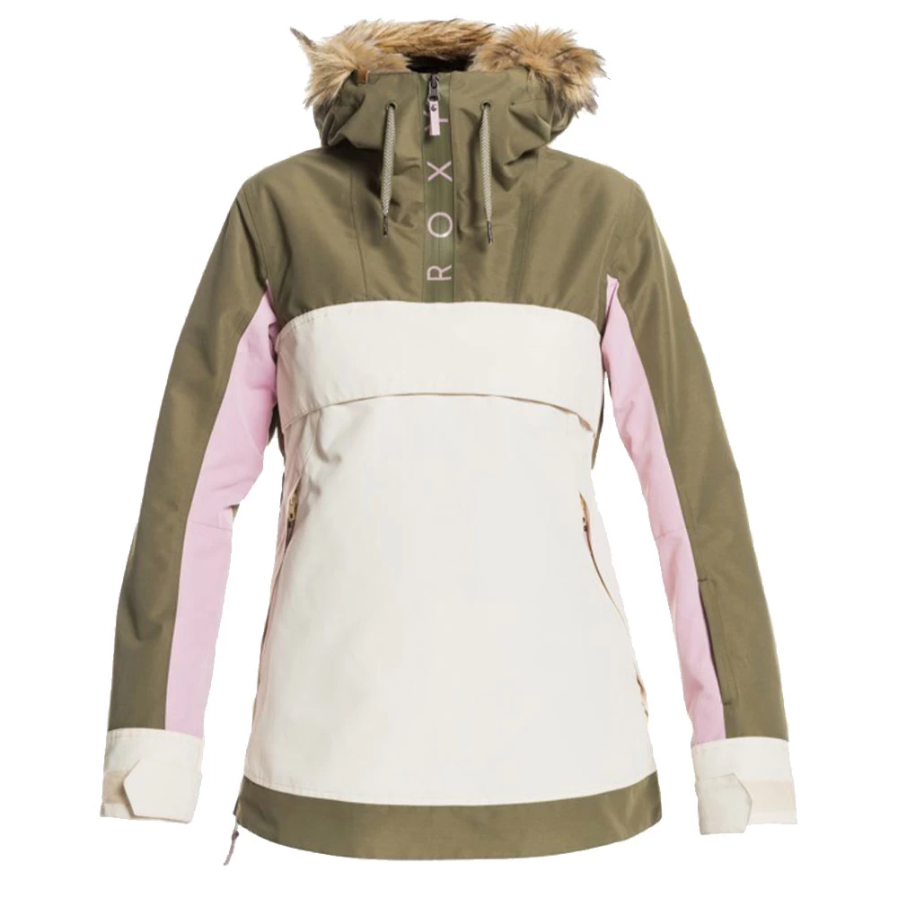 Roxy Shelter Skijacke in Olivgrün/Elfenbeinweiß mit farbigen Bereichen