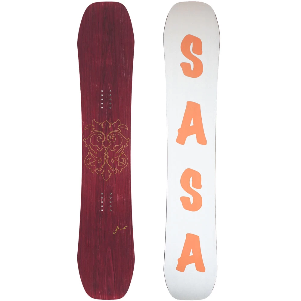 Mit Frau Holle macht das Snowboarden einfach nur Spaß! Egal ob auf der Piste, im Park oder Backcountry, das Board holt das Beste aus dir heraus und fühlt sich auf dem kompletten Berg zuhause. Die traditionelle Vorspannung in der Boardmitte bringt verlässlichen Kantenhalt und Laufruhe, während die Rocker-Tips für ein spielerisches Fahrgefühl und mühelosen Auftrieb im Tiefschnee sorgen. Optisches Highlight ist das handgefärbte Ahornfurnier mit goldenem Ornament-Linework welches wie Seide in der Sonne schimmert. Die weißen ABS Sidewalls und die gleichfarbige Base mit dem SASA Schriftzug im passenden Coral-Farbton runden das Gesamtdesign ab. Im Herzen trägt Frau Holle einen Holzkern aus Pappel und Buche, welcher mit Glasfaser und vier Carbonstreifen verstärkt ist und somit für Sprungkraft und Reaktionsvermögen sorgt. Diese Konstruktion ermöglicht dem Brett eine verlässliche Kraftübertragung und einen langlebigen Flex.